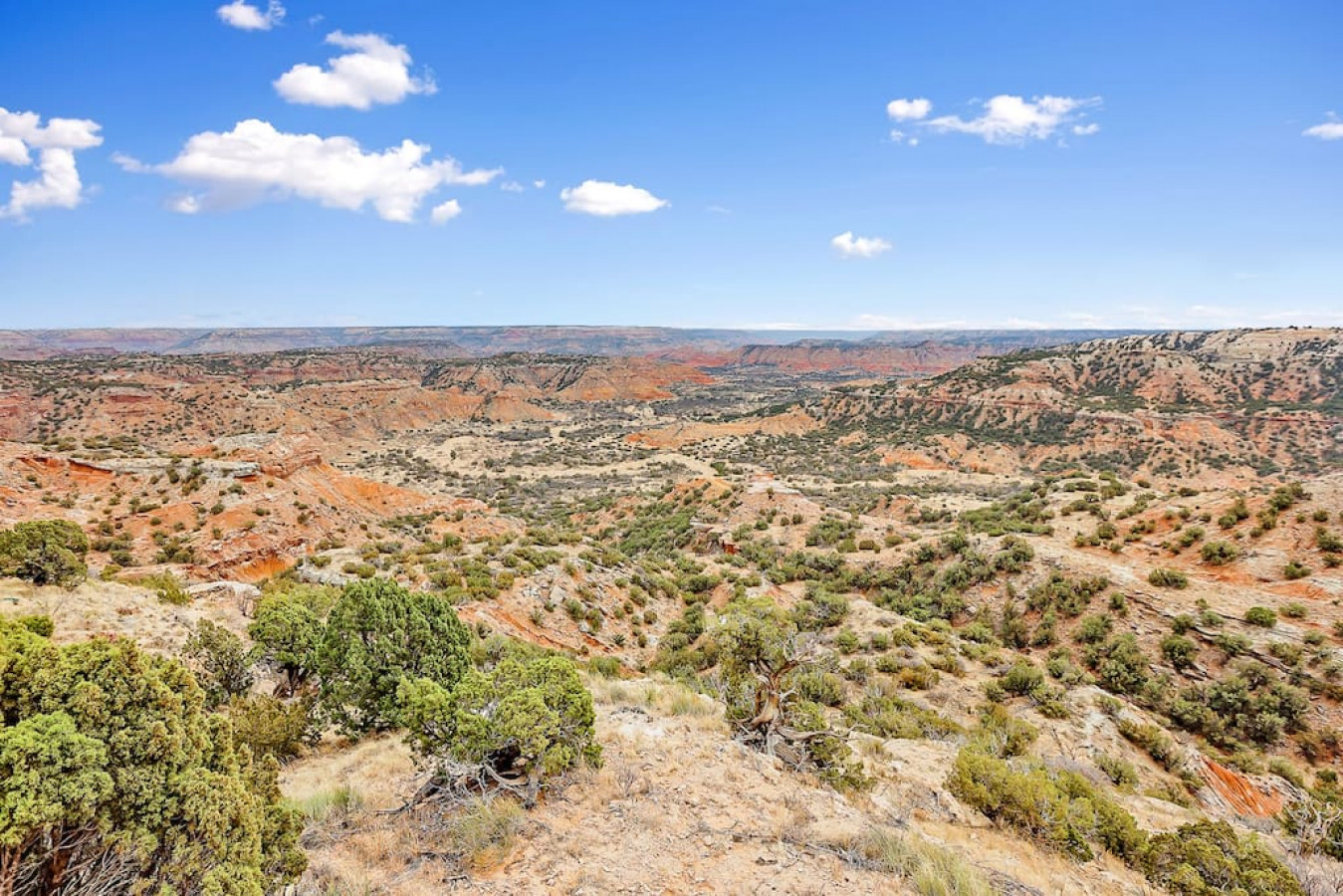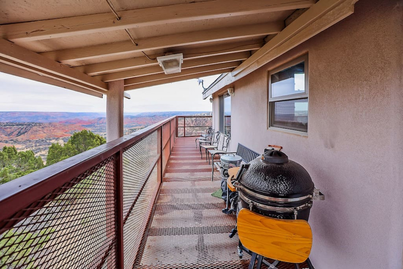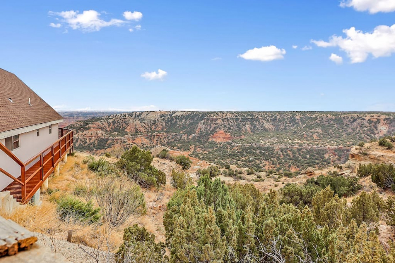 This destination offers the view of a lifetime only a short drive from the second-largest canyon in the United States. When the wind blows it feels like an intense wind tunnel. It blows large heavy things off the porch so there are cushions and tables that can be set up outdoors for evening enjoyment. There is no stove; only a microwave, crock pot, coffee maker, and toaster oven. The mattresses are luxury models. The bathroom is small with limited counter space with a standard shower. There is an outdoor grill ( a green egg) with charcoal and an electric starter. Enjoy the panoramic view of Palo Duro Canyon all across the horizon. Be sure and save an evening for stargazing away from the city lights. This is a remote location and the internet can go out during storms. AT&T is the only mobile service that works inside the cabin. Most other services work nearby but not at this exact location. Check out the destinations in nearby Canyon, Texas. Panhandle Plains Museum is one of Texas’ largest museums and there are great restaurants and a quaint shopping town square with a farmer’s market on Sat mornings during the summer. There are brochures at the cabins that cover all the activities in the area. Text me if you have questions. Allow some extra time to experience the zip line between the Palo Duro Canyon entrance and the last cabin in the private gated community. The owner is nearby for any needed entertainment suggestions. Guests may drive in on the road and stay in the cabin. No access to Palo Duro Canyon directly from the cabin. For hiking guests will need to drive five minutes to the Palo Duro State Park. The owner and assistant are available to help with issues or questions by phone or text message. Nearby points of interest include: * Palo Duro Canyon State Park * Panhandle Plains Historic Museum * Palo Duro Zip Line * Palo Duro Riding Stable * Palo Duro Jeep Ranch Creek tours * 20 miles from Canyon Texas with local restaurants and businesses * 30 miles from Amarillo Texas with local restaurants and businesses * Canyon Texas has a farmers' market during the summer A car is recommended. NOT kid friendly. This property sits on the edge of a canyon cliff. It is beautiful, but not safe for children if they wander off or are not closely supervised.
